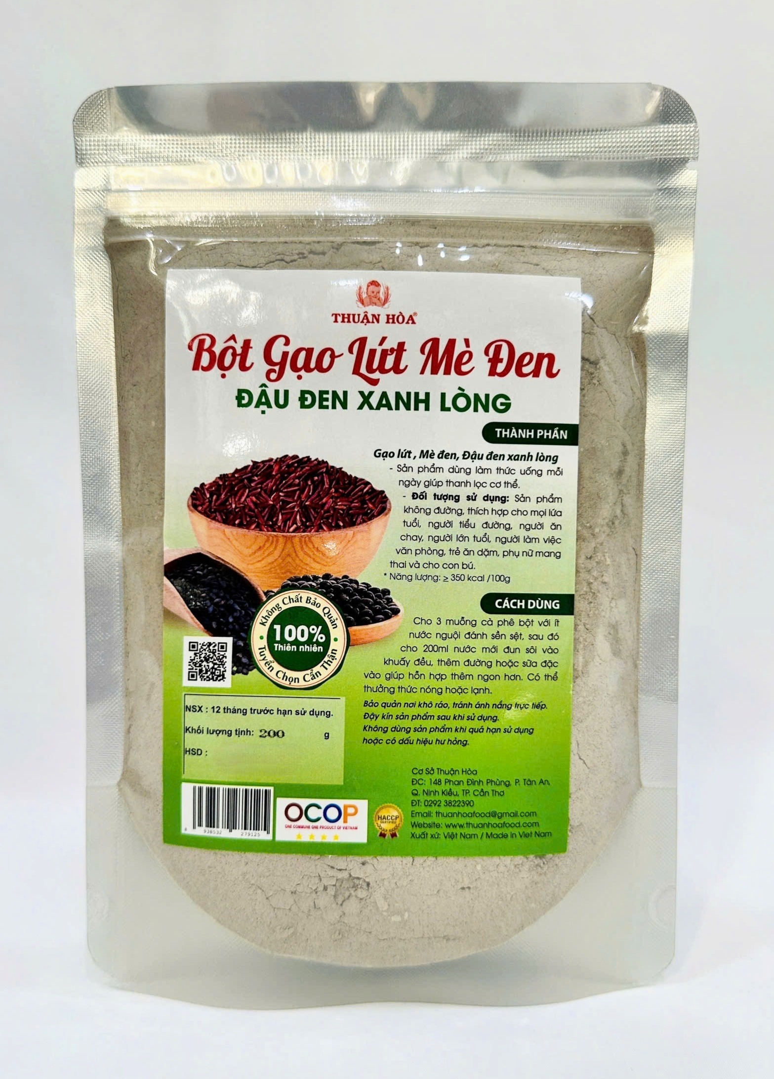 - Bột Gạo Lứt Mè Đen Đậu Đen Xanh Lòng Thuận Hòa pha với sữa đặc thơm ngon. Bảo quản ngăn mát tủ lạnh để dùng trong ngày.