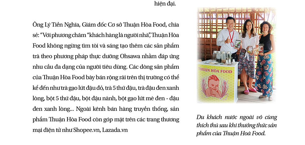 Ông Lý Tiền Nghĩa, Giám đốc Cơ Sở Thuận Hòa Food, chia sẻ: "Với phương châm "khách hàng là người nhà", Thuận Hòa Food không ngừng tìm tòi và sáng tạo thêm các sản phẩm trà theo phương pháp thực dưỡng Ohsawa nhằm đáp ứng nhu cầu đa dạng của người tiêu dùng. Các dòng sản phẩm của Thuận Hòa Food bày bán rộng rãi trên thị trường có thể kể đến như Trà Gạo Lứt Đậu Đỏ, Trà 5 Thứ Đậu, Trà Đậu Đen Xanh Lòng, Bột 5 Thứ Đậu, Bột Đậu Nành, Bột Gạo Lứt Mè Đen-Đậu Đen Xanh Lòng...Ngoài kênh bán hàng truyền thống, sản phẩm Thuận Hòa Food còn góp mặt trên các trang thương mại điện tử như Shopee.vn, Lazada.vn
